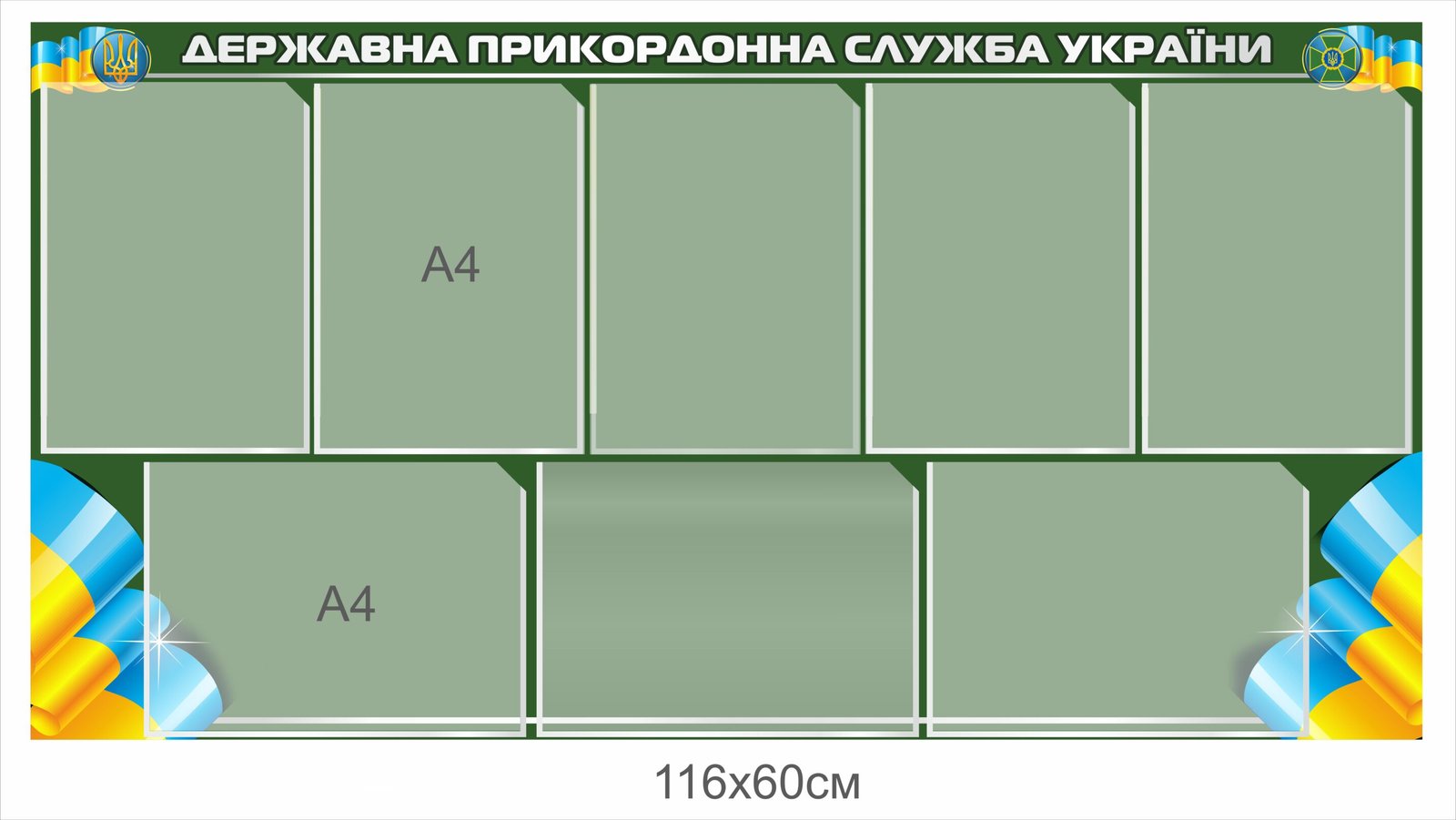 Для змінної інформації встановлюються прозорі кишені з ПЕТ-пластику, які відзначаються довговічністю,