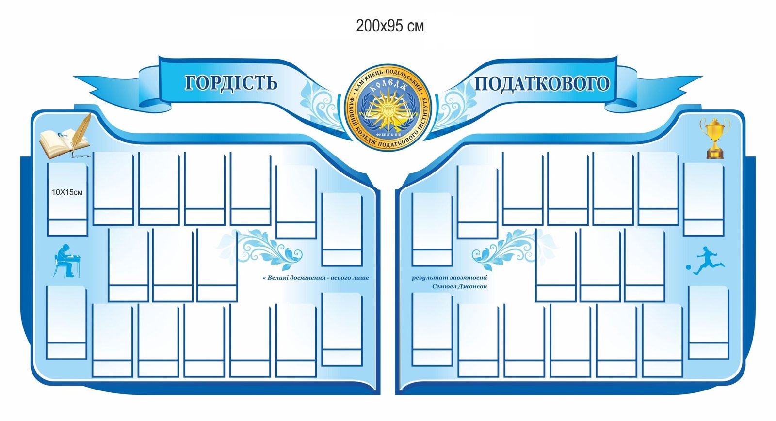 Також ми можемо розробити індивідуальний дизайн стенду з нуля відповідно до ваших вимог та побажань.