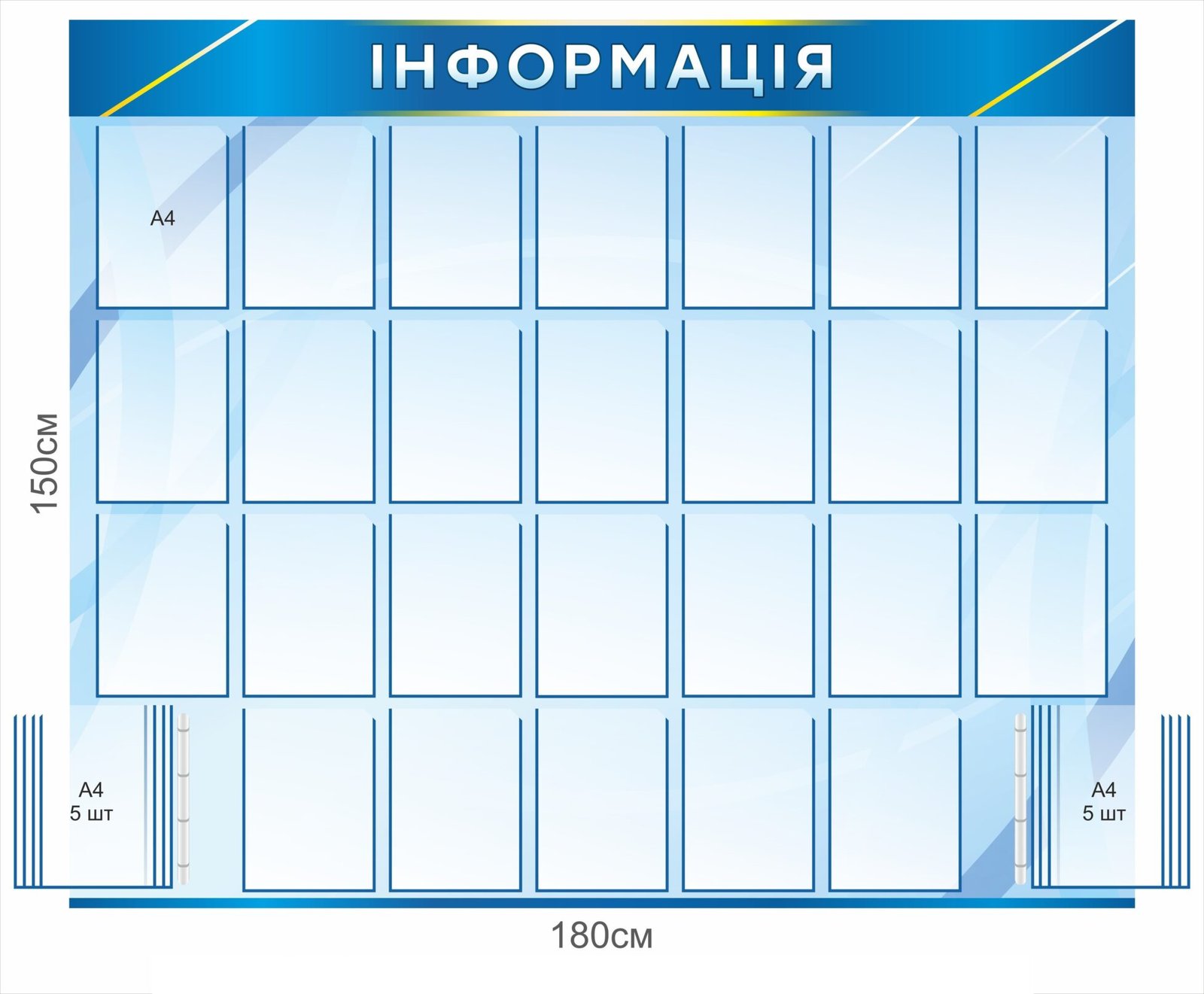 Для змінної інформації встановлюються прозорі кишені з ПЕТ-пластику, які відзначаються довговічністю,