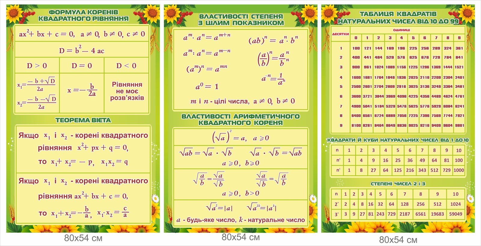 Замовляйте – Комплект стендів «Формули квадратного рівняння та степенів» – TB-KLAS.INFO