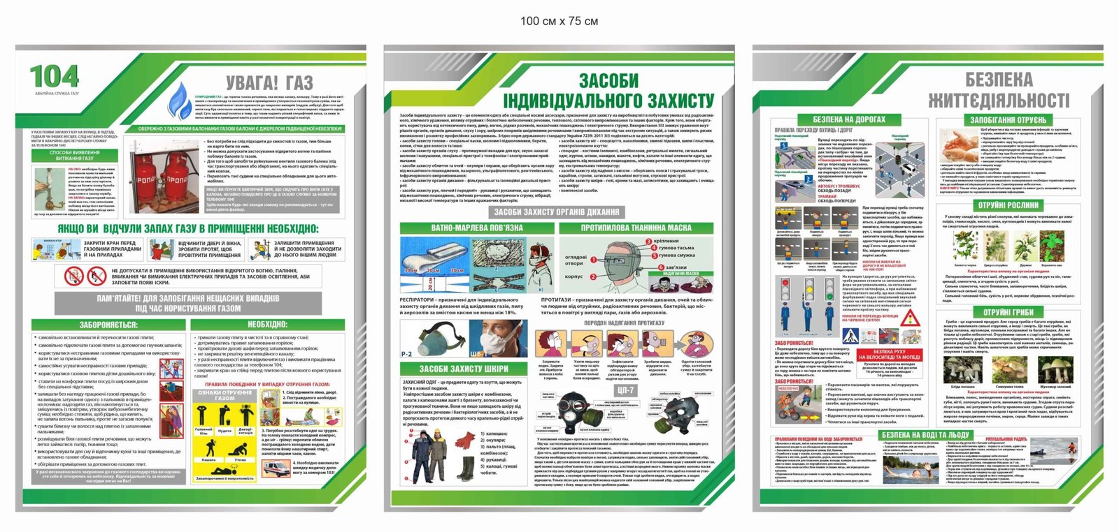 Комплект стендів по безпеці життедіяльності включає:
