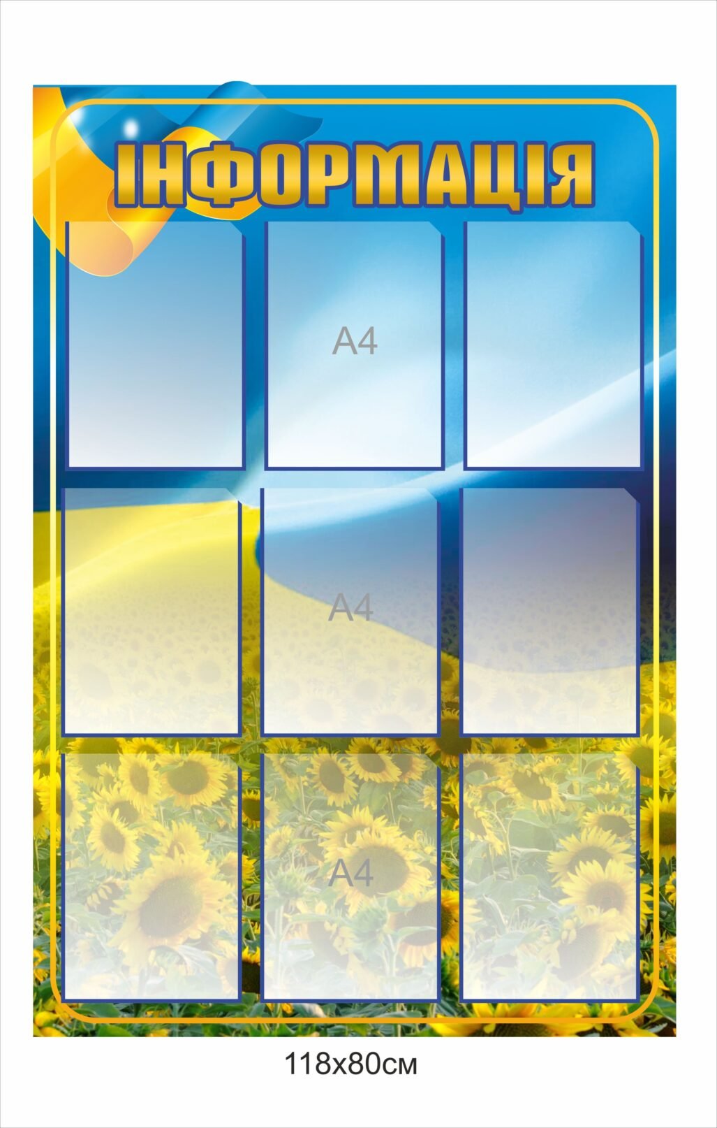 (вартість у такому випадку розраховується індивідуально — деталі уточнюйте у менеджера).Зображення наноситься на повнокольорову вінілову плівку, що забезпечує чітке та зручне сприйняття всієї інформації на стенді.