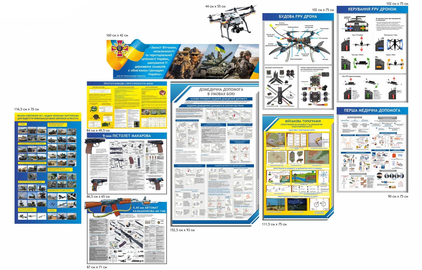 Набір пластикових стендів для військового навчального закладу включає в себе: