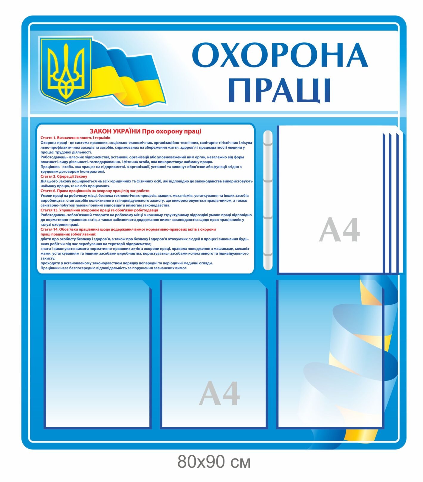 (вартість у такому випадку розраховується індивідуально — деталі уточнюйте у менеджера).Зображення наноситься на повнокольорову вінілову плівку, що забезпечує чітке та зручне сприйняття всієї інформації на стенді.