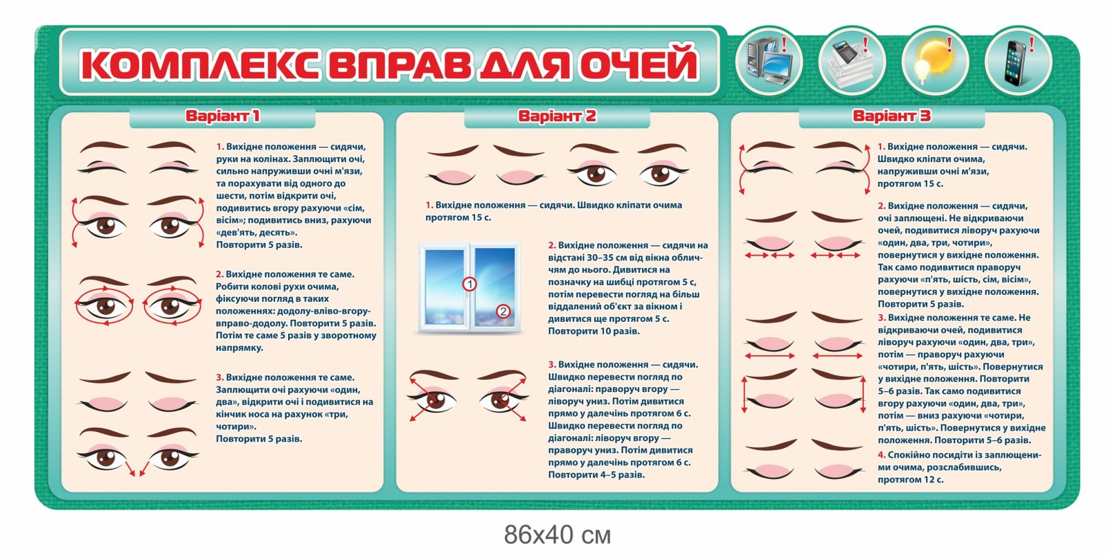 Стенд до кабінету інформатики “Комплекс вправ для очей”