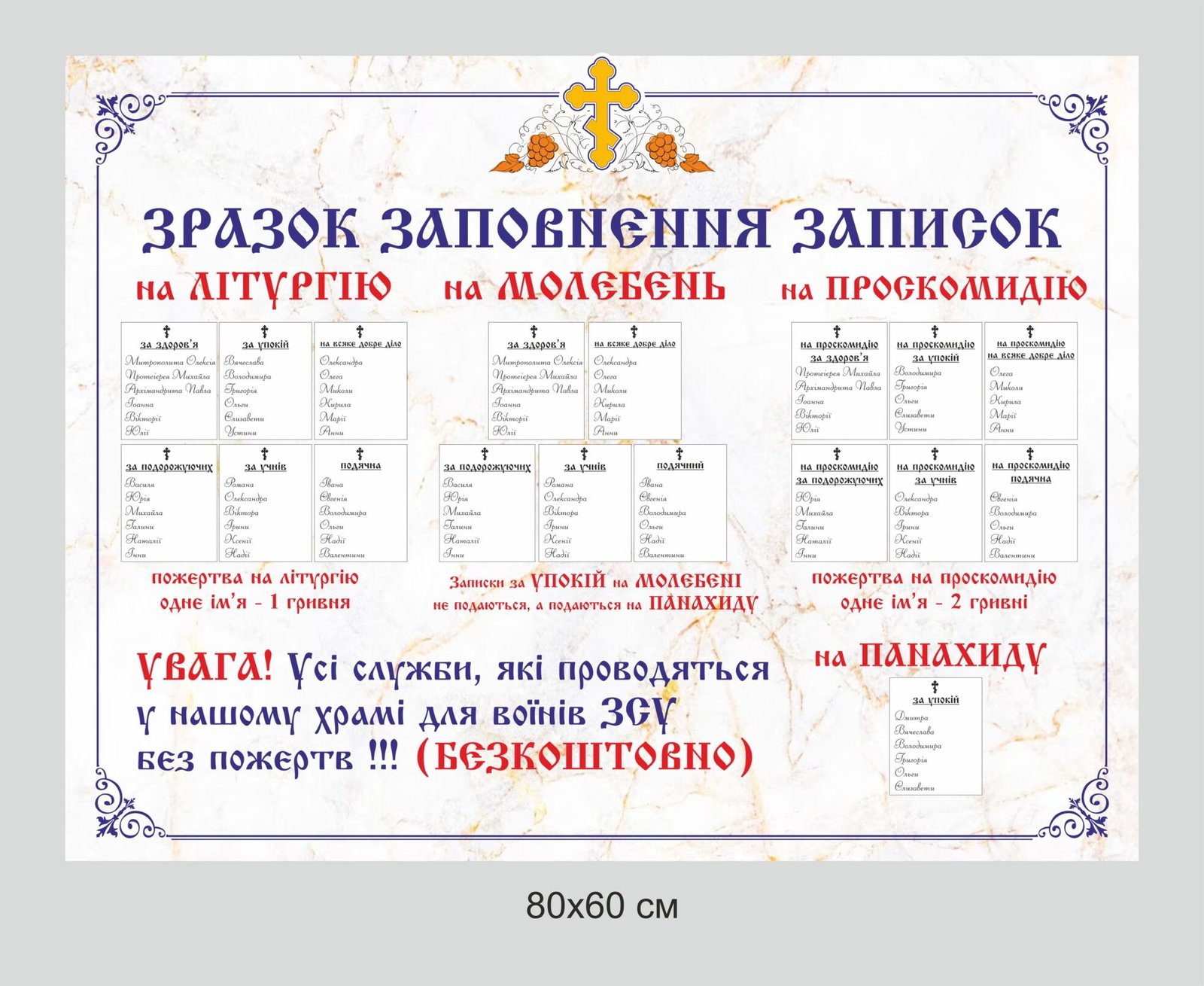 Стенд до храму “Зразок заповнення записок..”