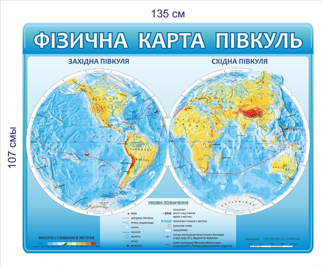 Стенд геграфічний “Фізична карта півкуль”