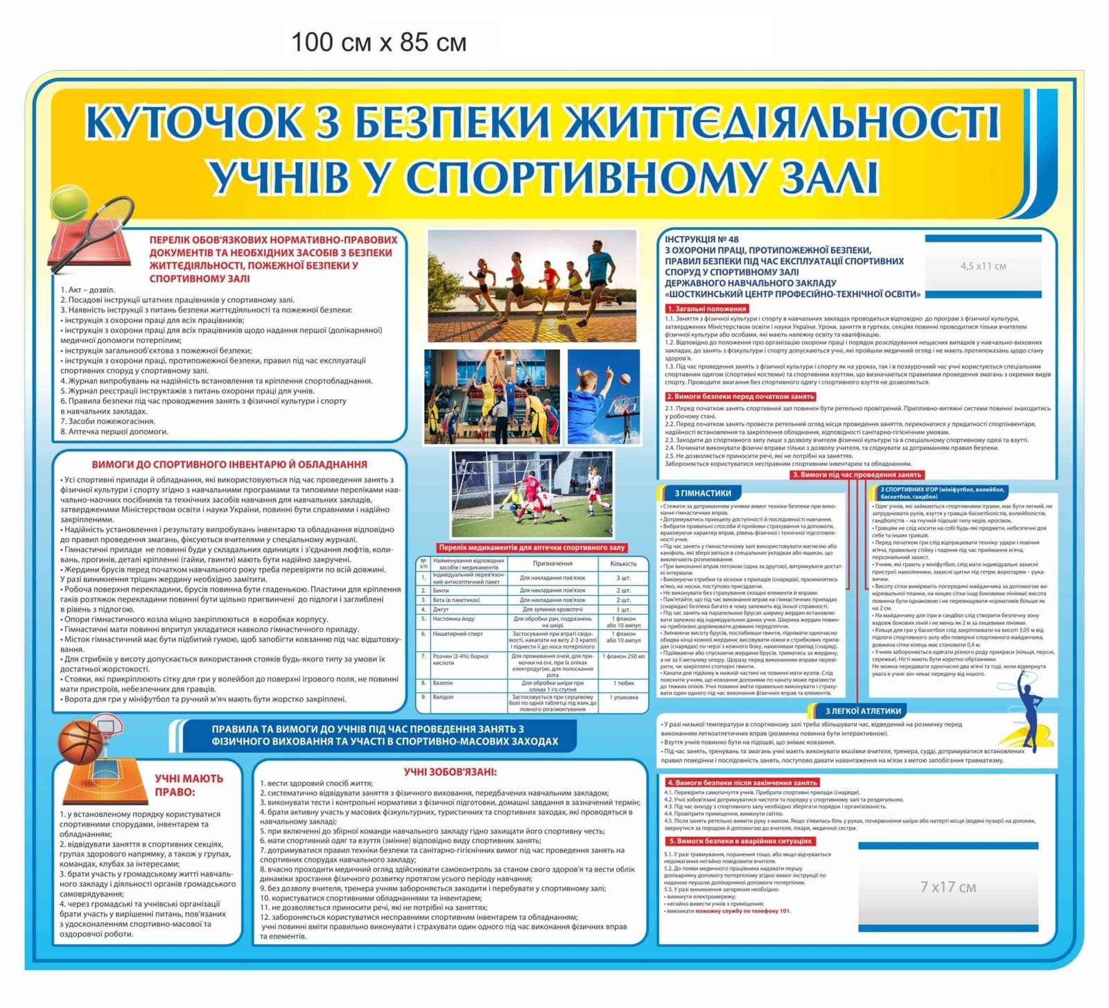 Стенд ” Куточок безпеки життедіяльності учні у спортивному залі”