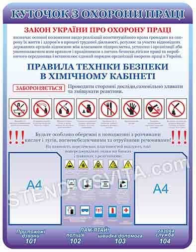 Стенд “Куточок з охорони праці у хімічному кабінеті”