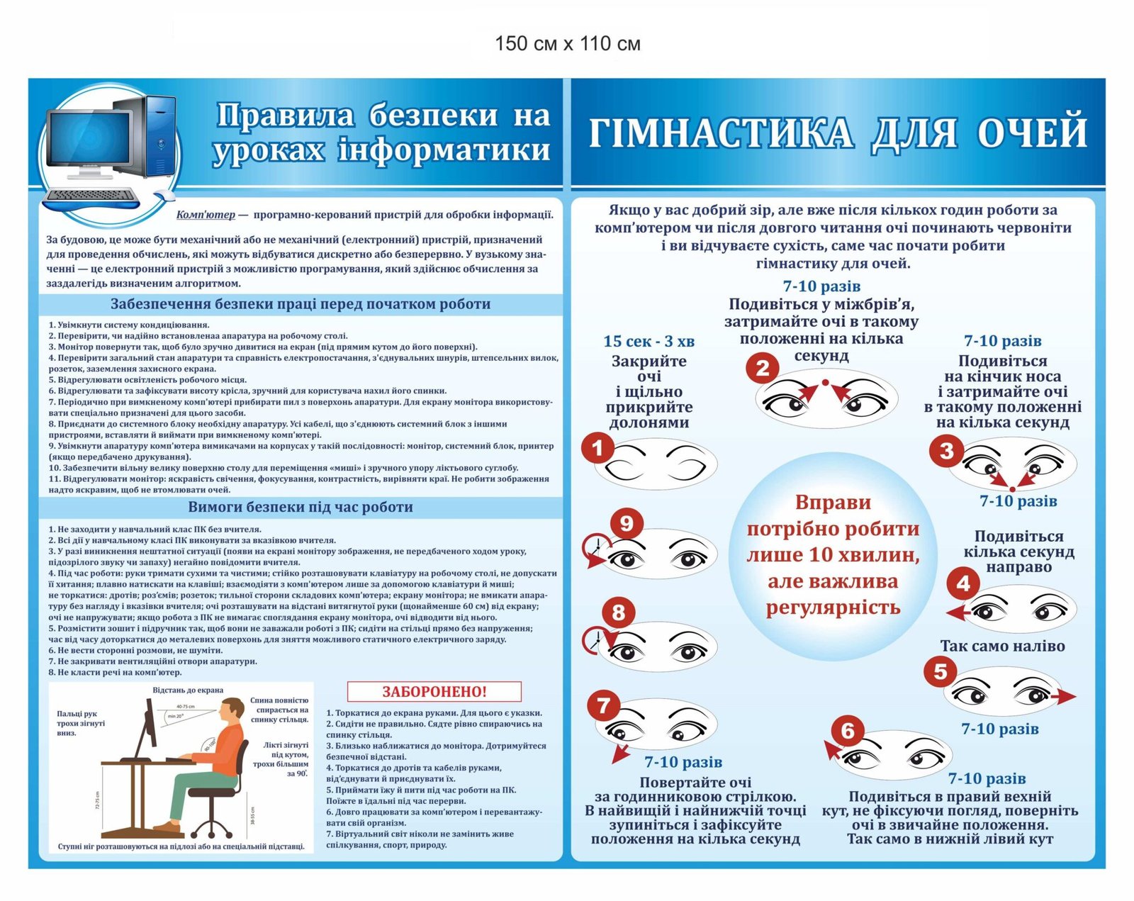 Стенд ” Правила безпеки на уроках інформатики, гімнастика для очей”