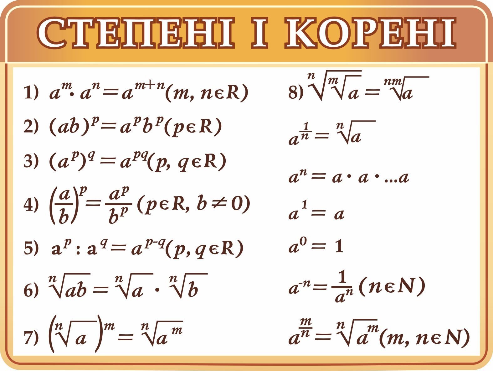 Замовляйте – Стенд “Степені, корені” TB-KLAS.INFO
