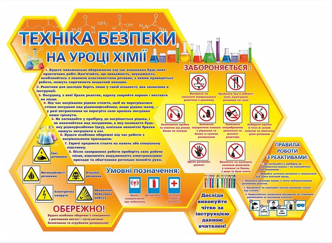 Стенд у вигляді сот “Техніка безпеки на уроці хімії”