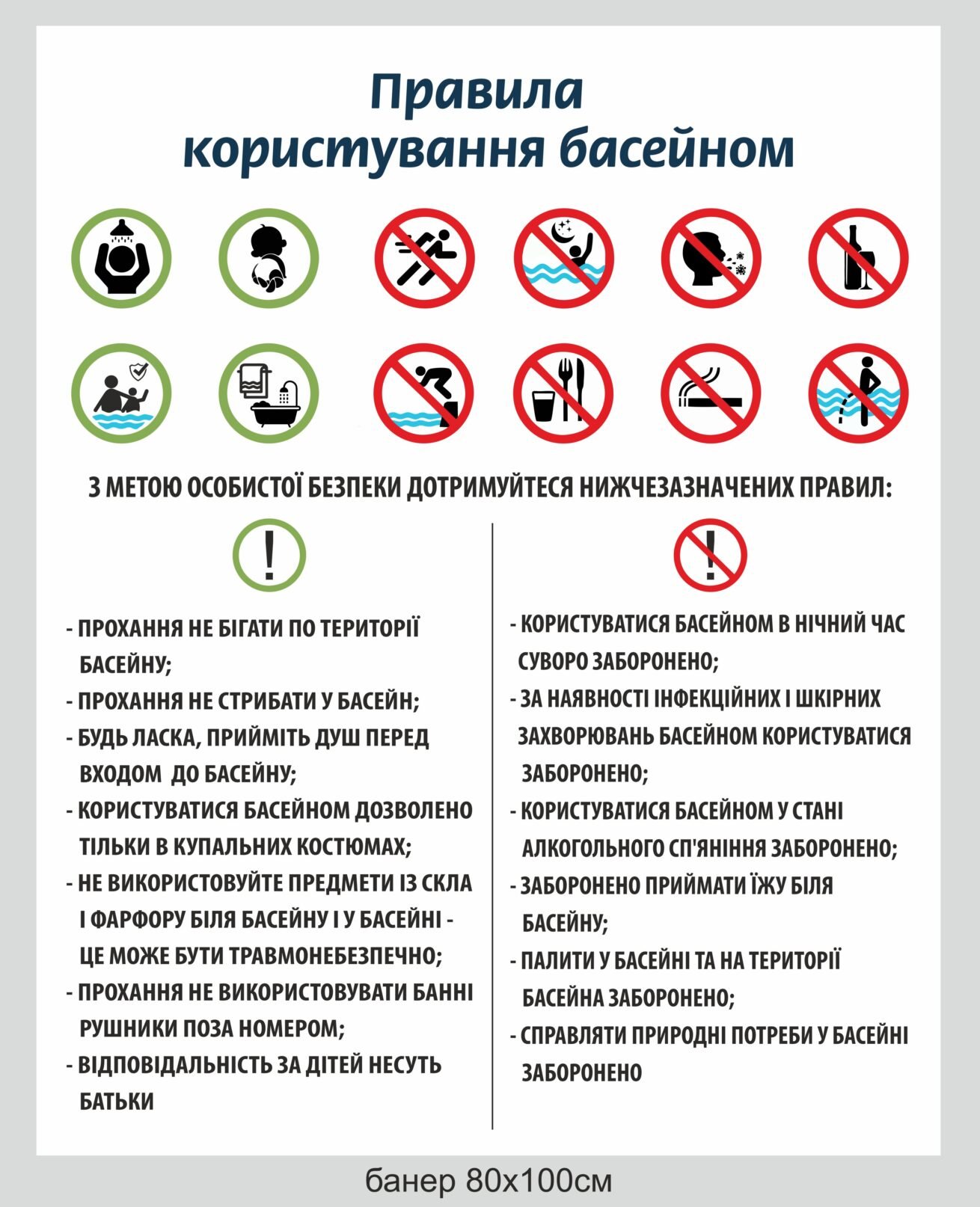 Замовляйте – Стенд з правелами поведінки у басейні – TB-KLAS.INFO