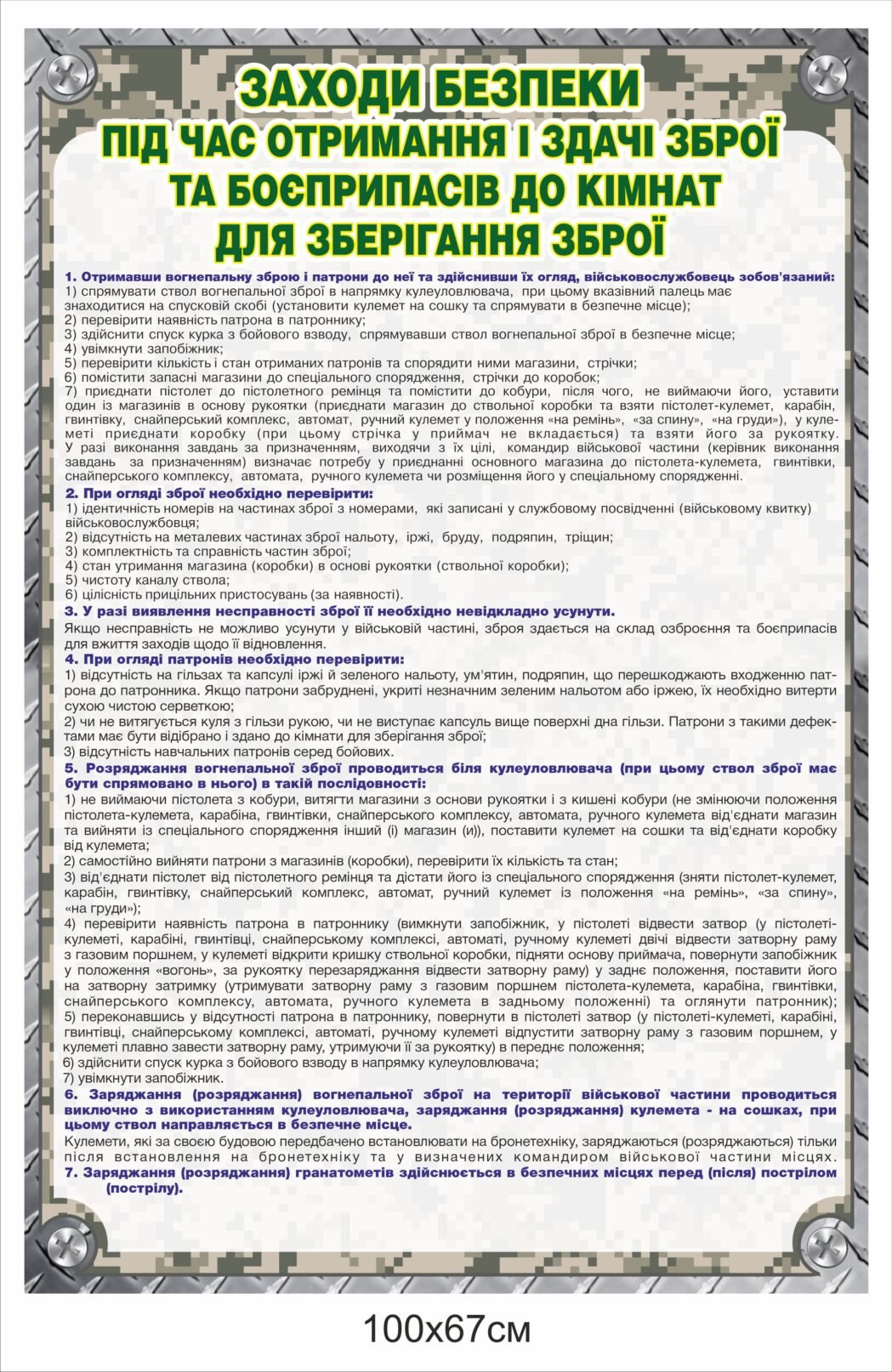 Стенд “Заходи безпеки під час отримання і здачі зброї”