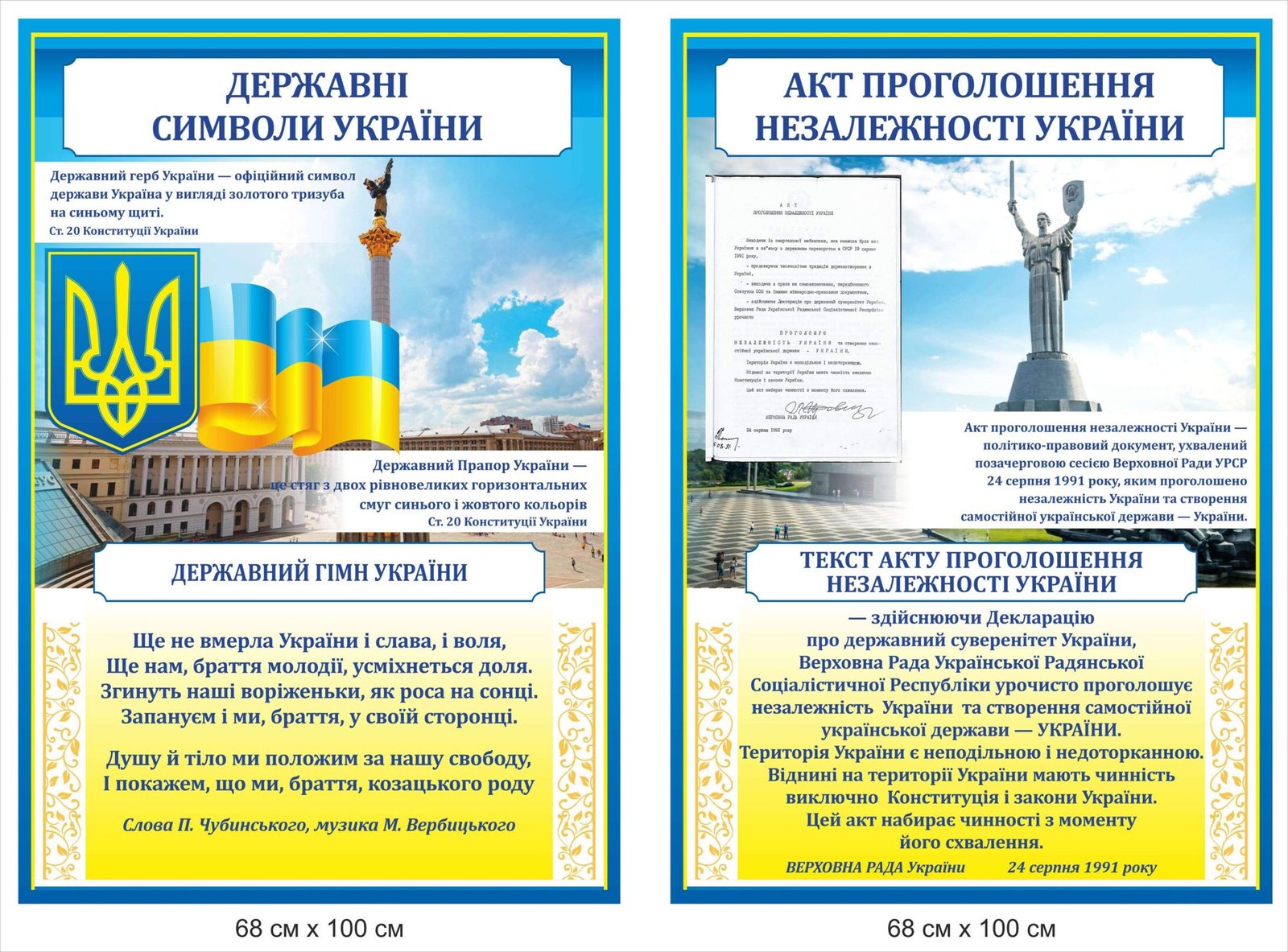 Стенди “Акт проголошення незалежності та державна символіка України”