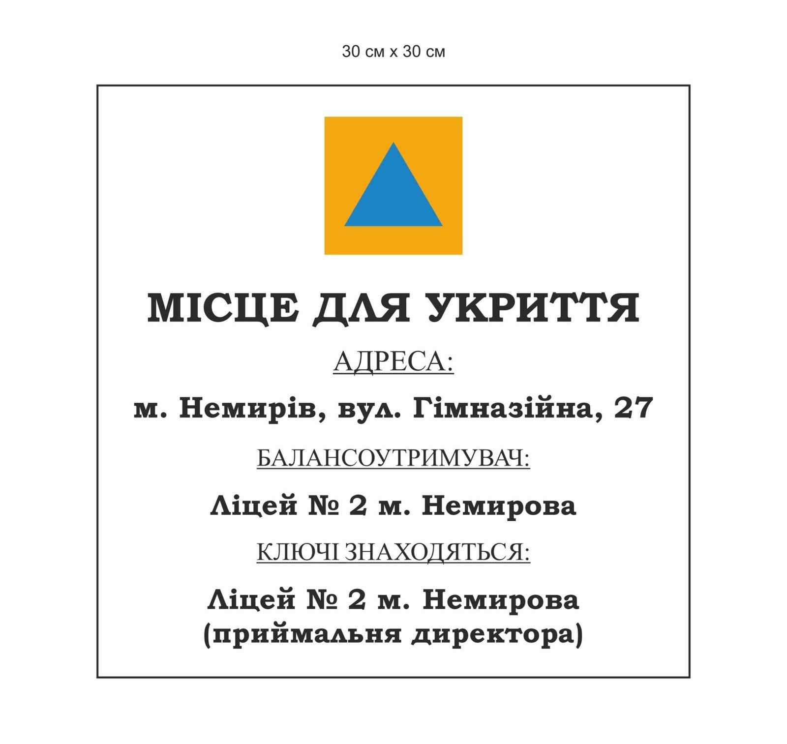 Табличка пластикова “Місце для укриття”