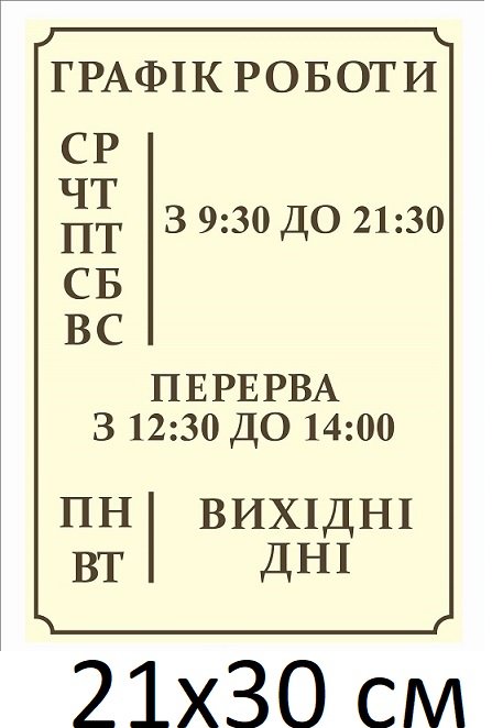 Табличка з графіком роботи